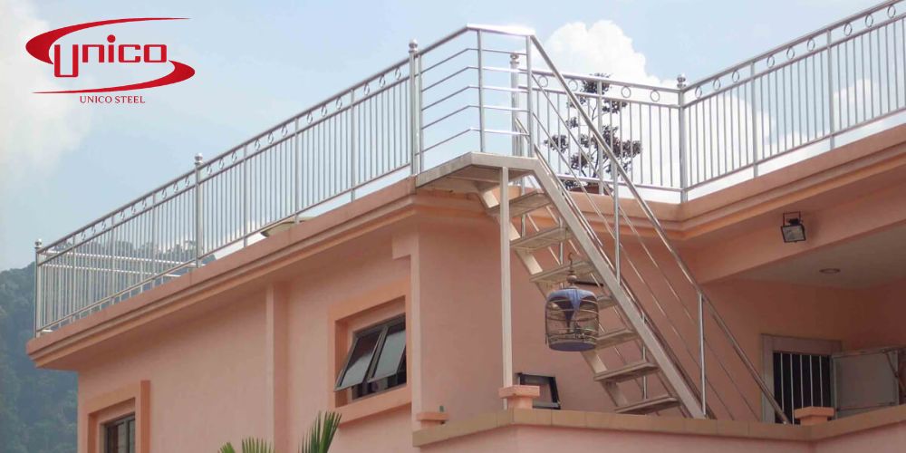 Inox dùng ngoài trời là nhóm ứng dụng rất phổ biến, từ lan can, mặt dựng, khung kết cấu, bảng hiệu cho đến hệ thống kỹ thuật hoặc chi tiết kiến trúc I Unicosteel