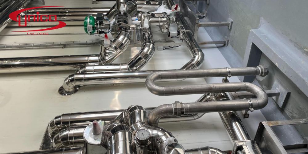 Đường ống inox trong hệ thống hóa chất hoặc xử lý nước I Unicosteel